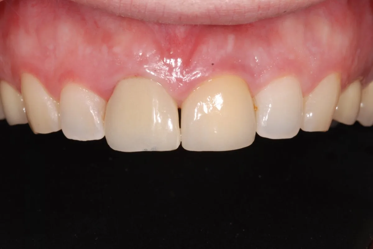 A conservative and aesthetic treatment plan is proposed: elimination of the infection through tooth extraction and cleaning of the area; aesthetic restoration of the central incisor with an immediate implant and ceramic crown, integrating the color and shape with the rest of the smile. The goal: to restore health without compromising aesthetics. Result after treatment: complete elimination of the infection, restoration of tooth function, aesthetic improvement of the incisor, and a natural, harmonious smile. Because in the anterior region… every detail matters
